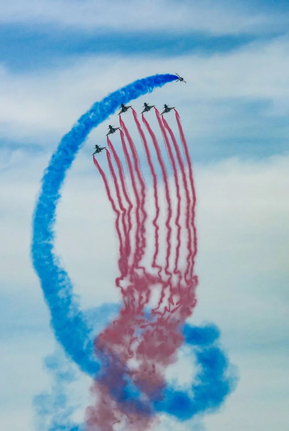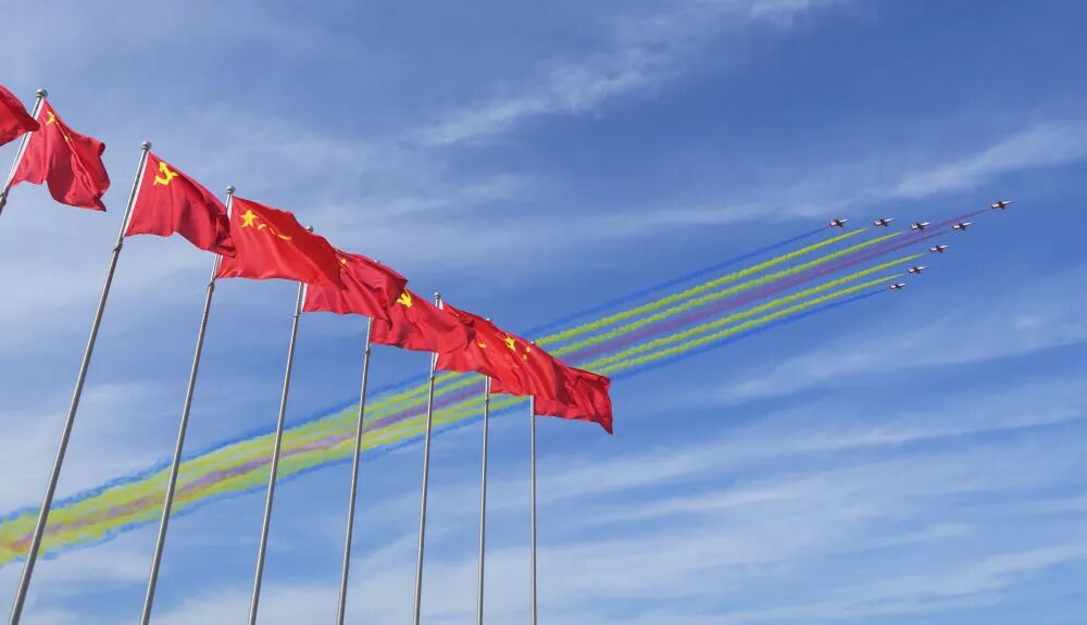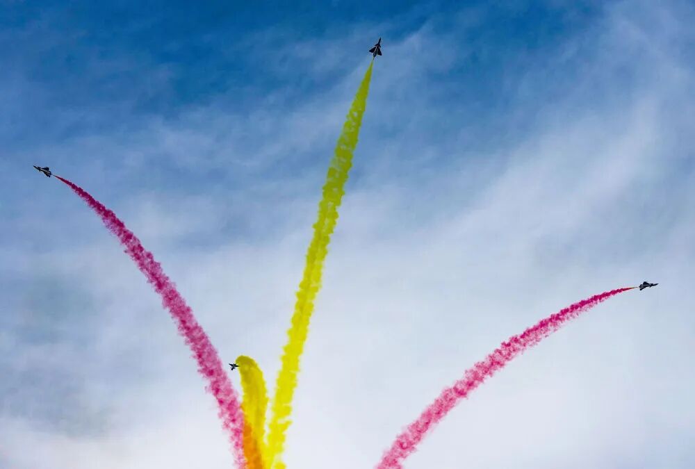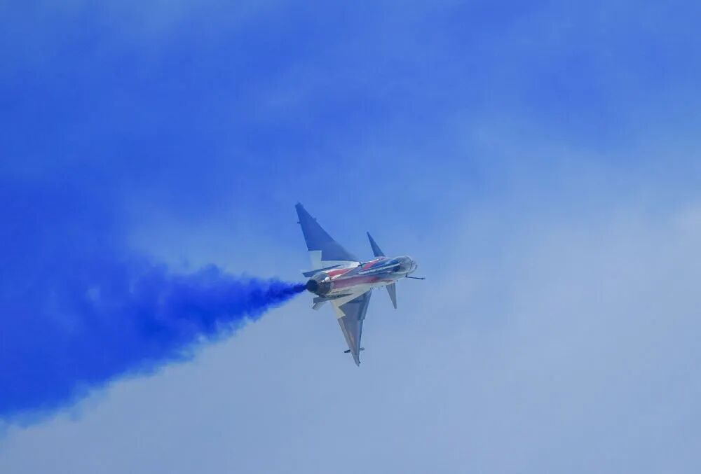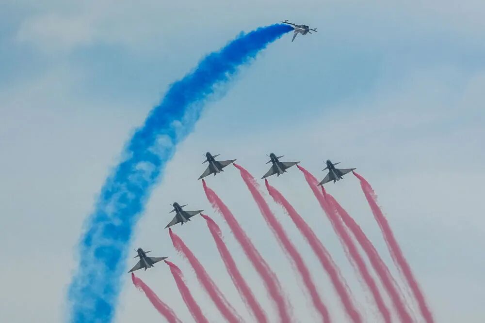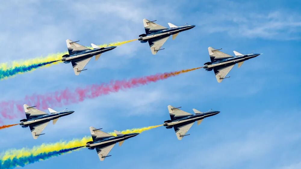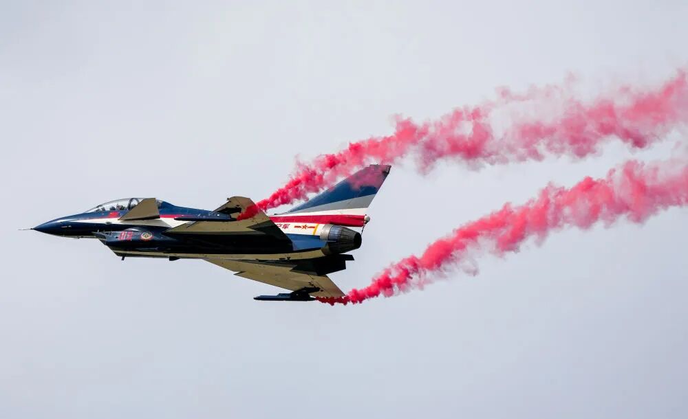 9月19日,空軍八一飛行表演隊進行飛行表演。新華社記者 唐成卓 攝