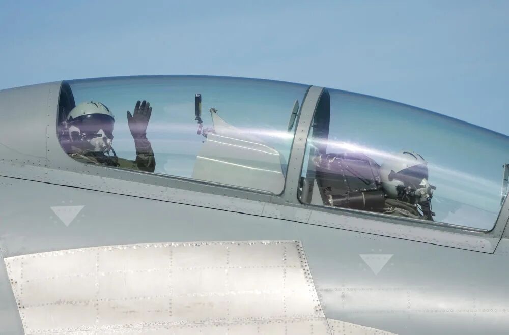 9月19日,2025年空軍航空開放活動和長春航空展上,飛行員向觀眾揮手致意。新華社記者 張楠 攝