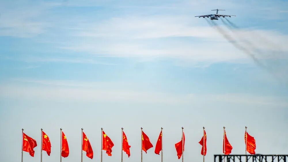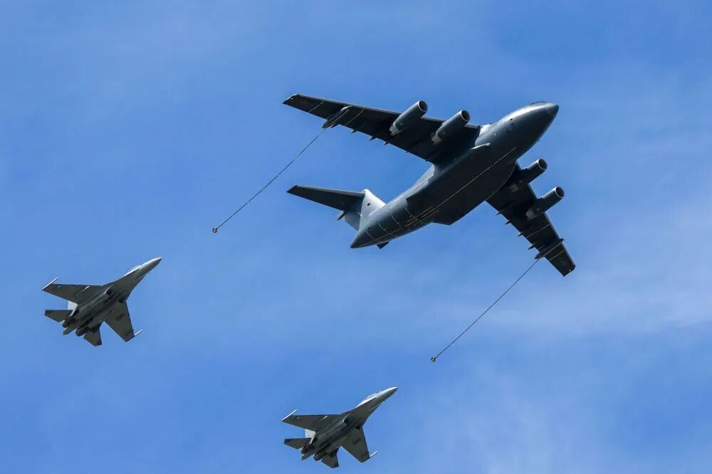9月19日,運油-20A通場飛行。新華社記者 唐成卓 攝