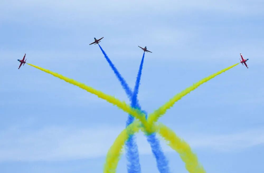 9月19日,空軍八一飛行表演隊進行飛行表演。新華社記者 許暢 攝