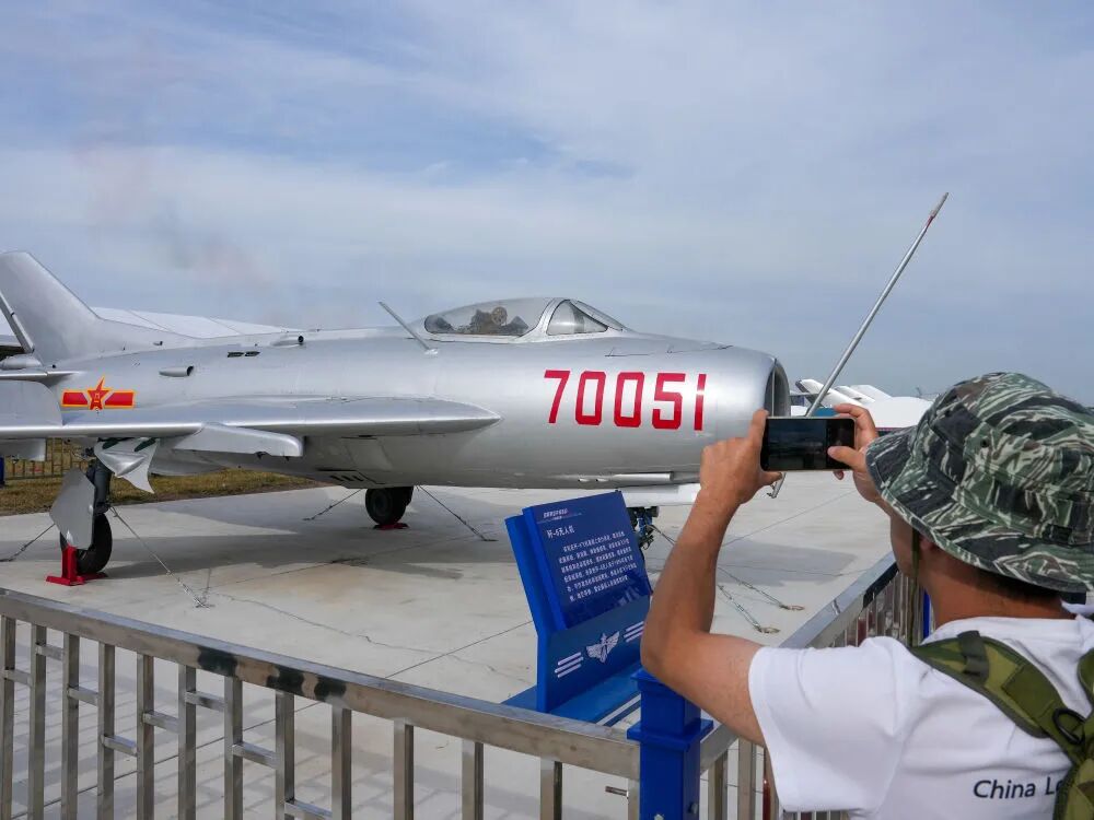 9月19日,2025年空軍航空開放活動和長春航空展上,觀眾參觀殲-6無人機。新華社記者 張楠 攝