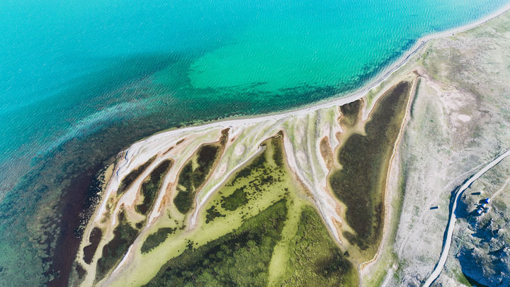 秋日的青海瑪多縣扎陵湖,風景如畫。