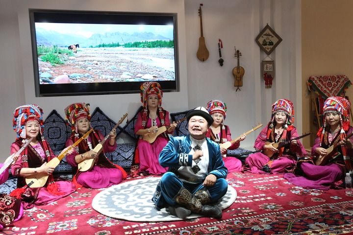 初秋清晨,新疆烏恰縣,《瑪納斯》國家級非物質文化遺產代表性傳承人江努日·圖日干巴依在家裏指導徒弟演唱。數千公里外的南京咪豆音樂節,買買提吐爾幹·艾色克為年輕觀眾帶來搖滾版《瑪納斯》。
