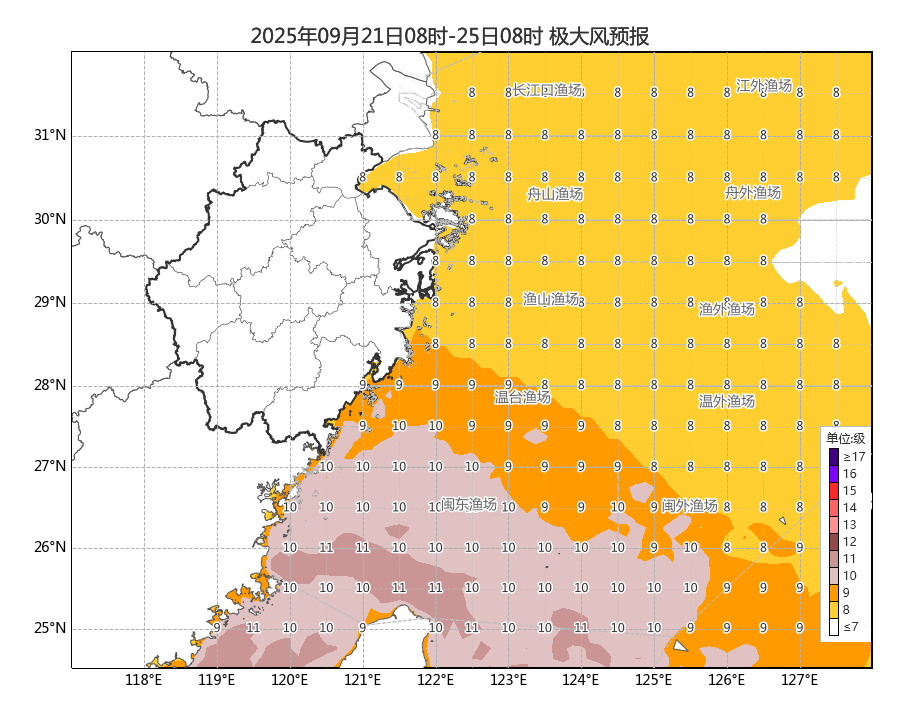 大風預報:東海南部海域今天(21日)夜裏至24日白天有大風,其中21日夜裏至22日最大陣風8~10級,23日增強至9~11級,24日白天仍有8~9級。浙南沿海海面21-23日也有8~9級大風。