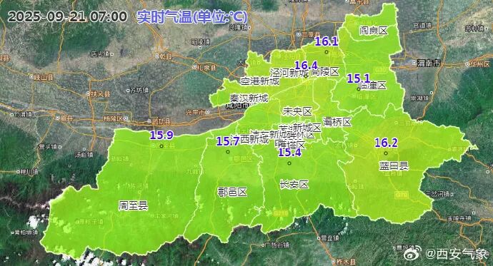 ▲今早7點,西安即時氣温