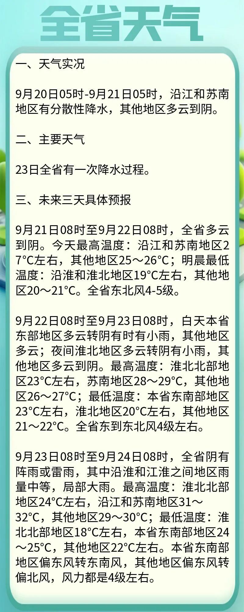 據江蘇氣象最新預報