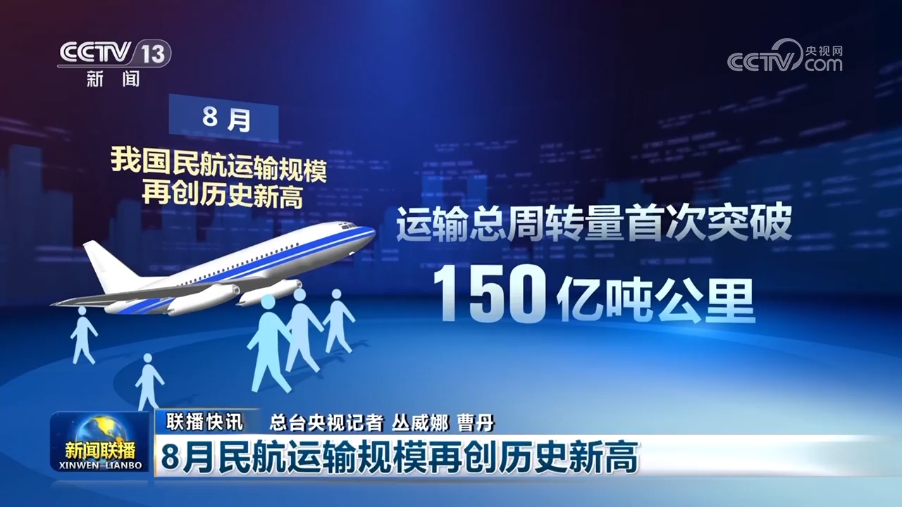 8月,我國民航運輸規模再創歷史新高,運輸總週轉量首次突破150億噸公里,旅客運輸量達7536.4萬人次,國際航線旅客運輸量同比增長15.3%。