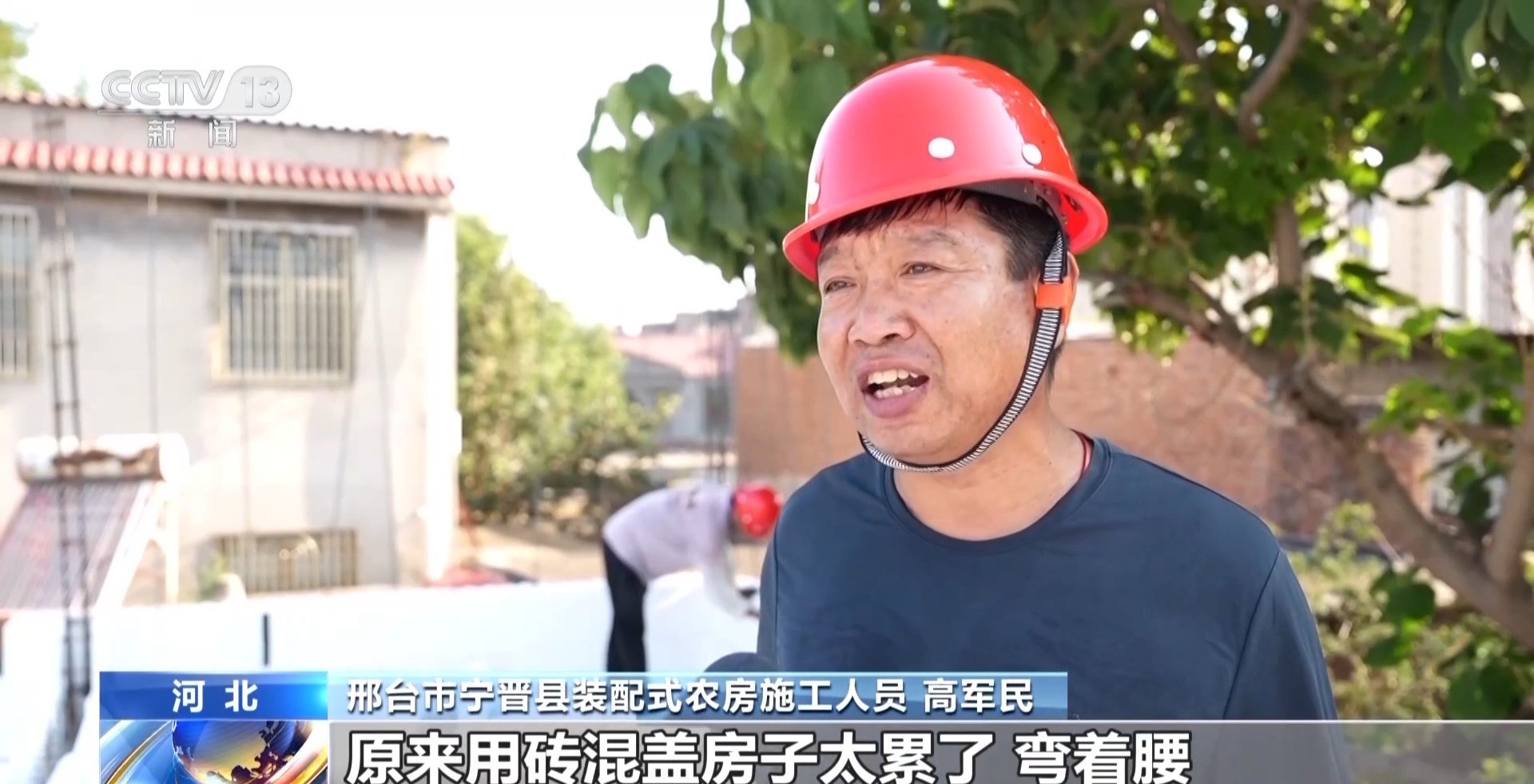 *邢台市寧晉縣裝配式農房施工人員 高軍民:*原來用磚混蓋房子太累了,彎着腰,現在咱們蓋房子快、乾淨,一層一層垛起來,一層30公分,特別快。