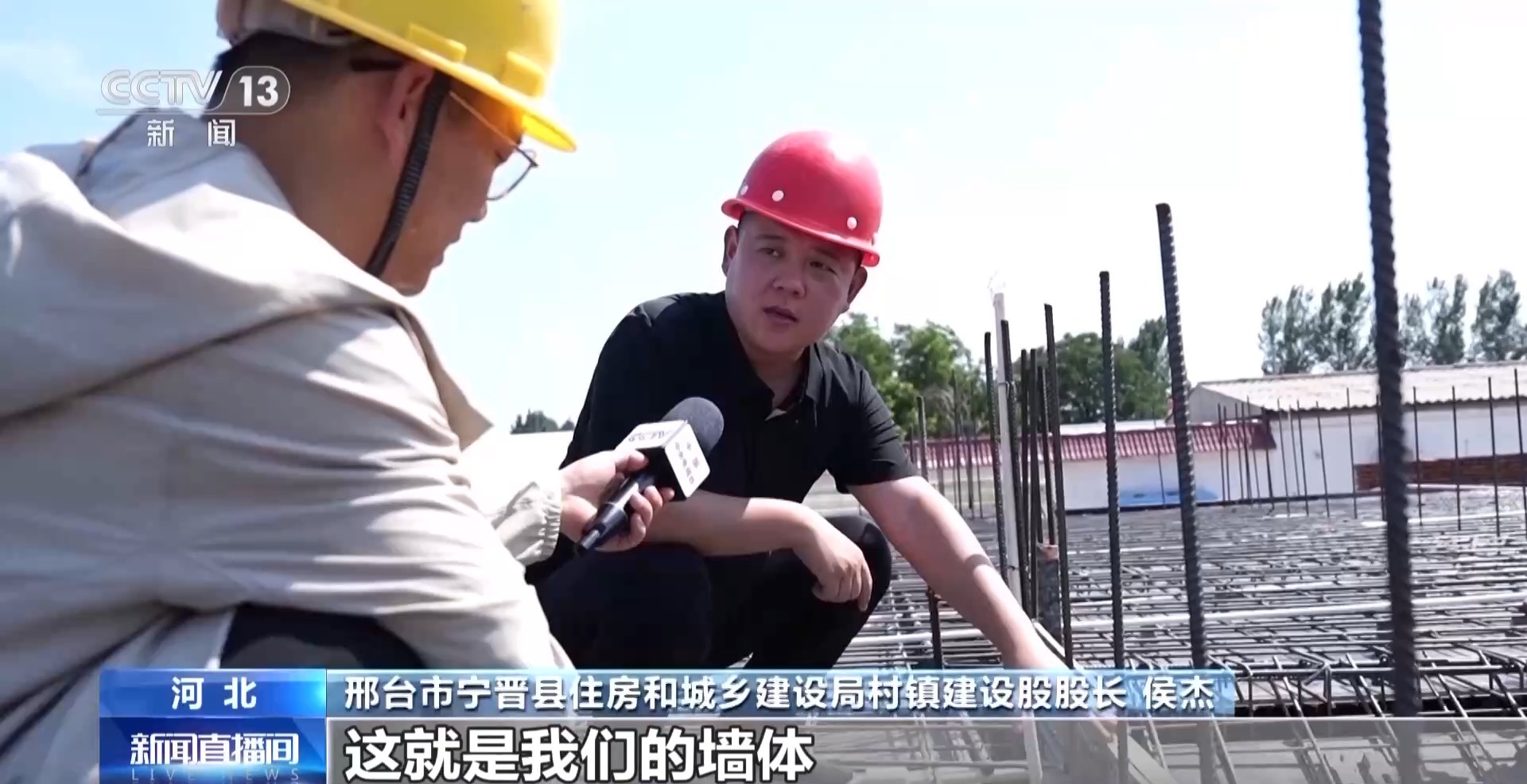 *邢台市寧晉縣住房和城鄉建設局村鎮建設股股長 侯傑:*這就是我們的牆體,橫向是25公分,豎向是45公分,然後鋪設鋼筋,澆築混凝土。