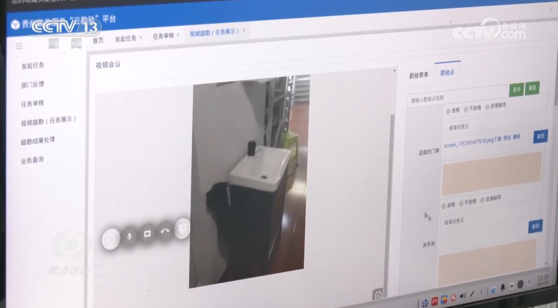 在貴陽一家準備開業的眼鏡店裏,店員通過視頻連線,按照政務服務中心工作人員的要求,用手機拍攝門店環境、驗光設備等各個細節。工作人員遠程進行核查,截圖留存,完成了第三類醫療器械許可申請的現場勘驗。