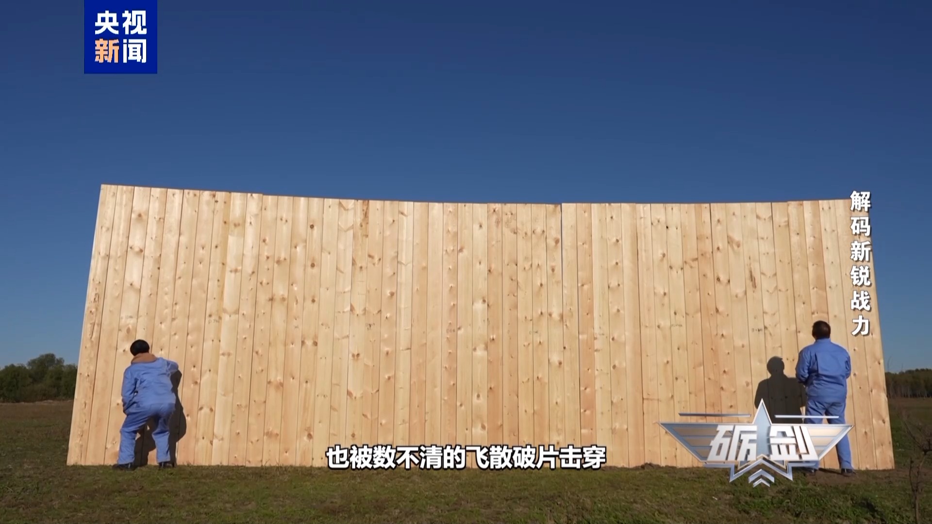 更遠的位置有一塊巨大的松木板,用來檢測破片的密度以及對於人員等軟目標的殺傷能力。