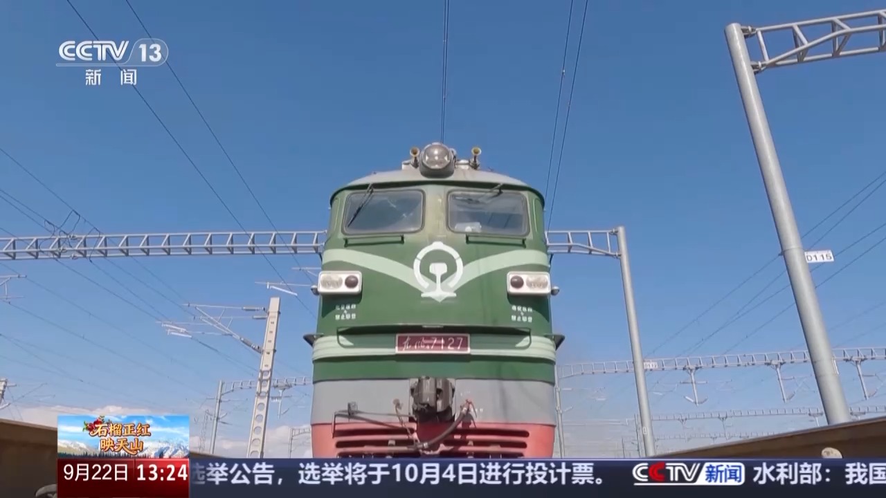 *總枱記者 宋文瑾:*從第六代國門向南走幾百米,我們就來到了霍爾果斯鐵路口岸,現在這裏已經成為國際物流陸路運輸的“黃金通道”。