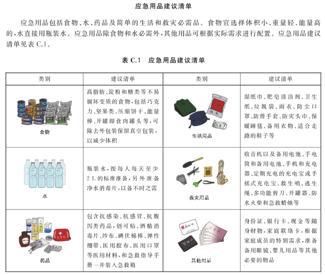 3.應急包宜包含家庭成員至少維持3天基本生存所需物品。留在家裏避災時所需的應急物品宜至少能位置7天基本生存。
