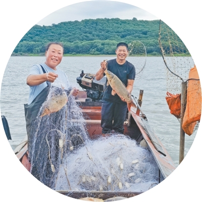 “開船咯!”年過六旬的老把頭尤雙喜吆喝聲洪亮。漁網“嘩啦”撒向江中,濺起一片銀亮的水花。兩個小時後,隨着漁網收緊,肥碩的鯉魚、通體青色的鰲花魚在網裏翻騰。
