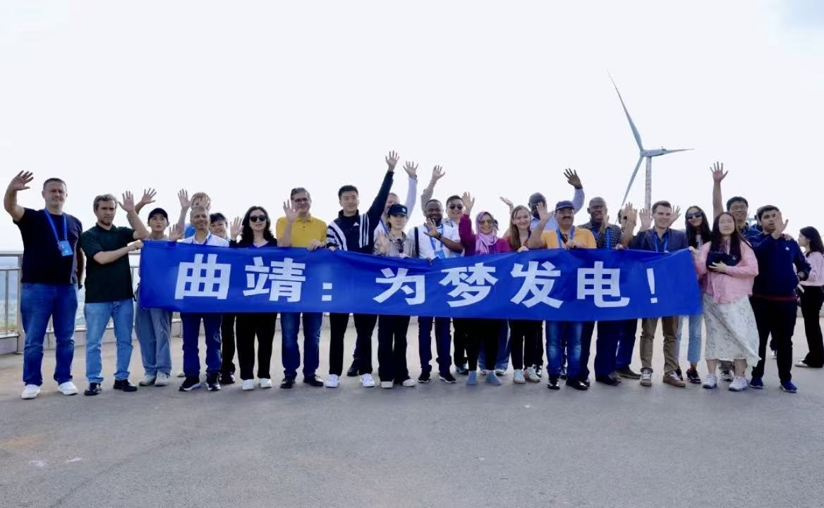 9月21日,巴基斯坦、突尼斯、塞爾維亞、瑞典等15國媒體組成的2025“一帶一路”中外媒體採訪調研行(亞非歐團),來到曲靖馬龍通泉風電場,實地探訪陸上風電機組。