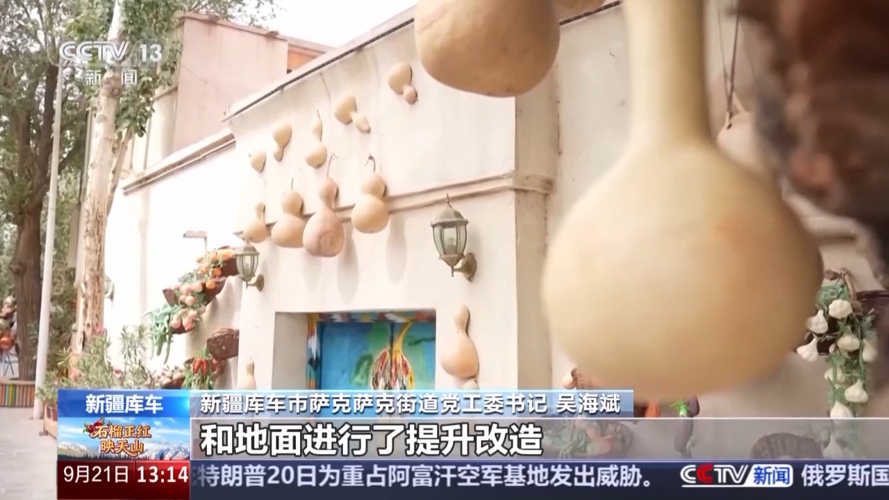 *新疆庫車市薩克薩克街道黨工委書記 吳海斌:*除了大門,我們還對老舊房屋、牆面和地面進行了提升改造。