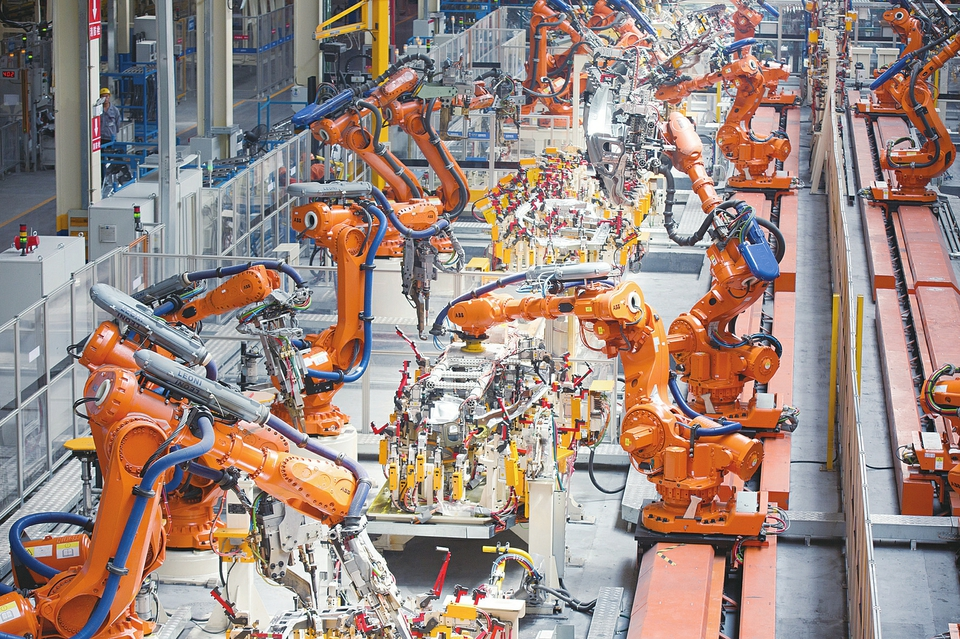 ▲吉利汽車晉中基地的全自動機器人塗裝生產線