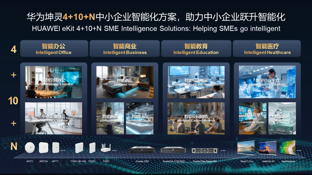 “10”代表圍繞四大場景打造的10大一站式解決方案,如初創空間辦公、中小企業辦公、智能酒店、數字診療平台、智能互動教室等。每一個方案都不是簡單的產品堆砌,而是經過預集成、預驗證的“交鑰匙工程”。例如,在智能辦公場景中,華為將路由、Wi-Fi 7、存儲、會議終端、安全防火牆等產品深度融合,形成從“初創空間”到中小企業“Pro、Max”的多級套包,滿足不同規模、不同預算企業的需求。