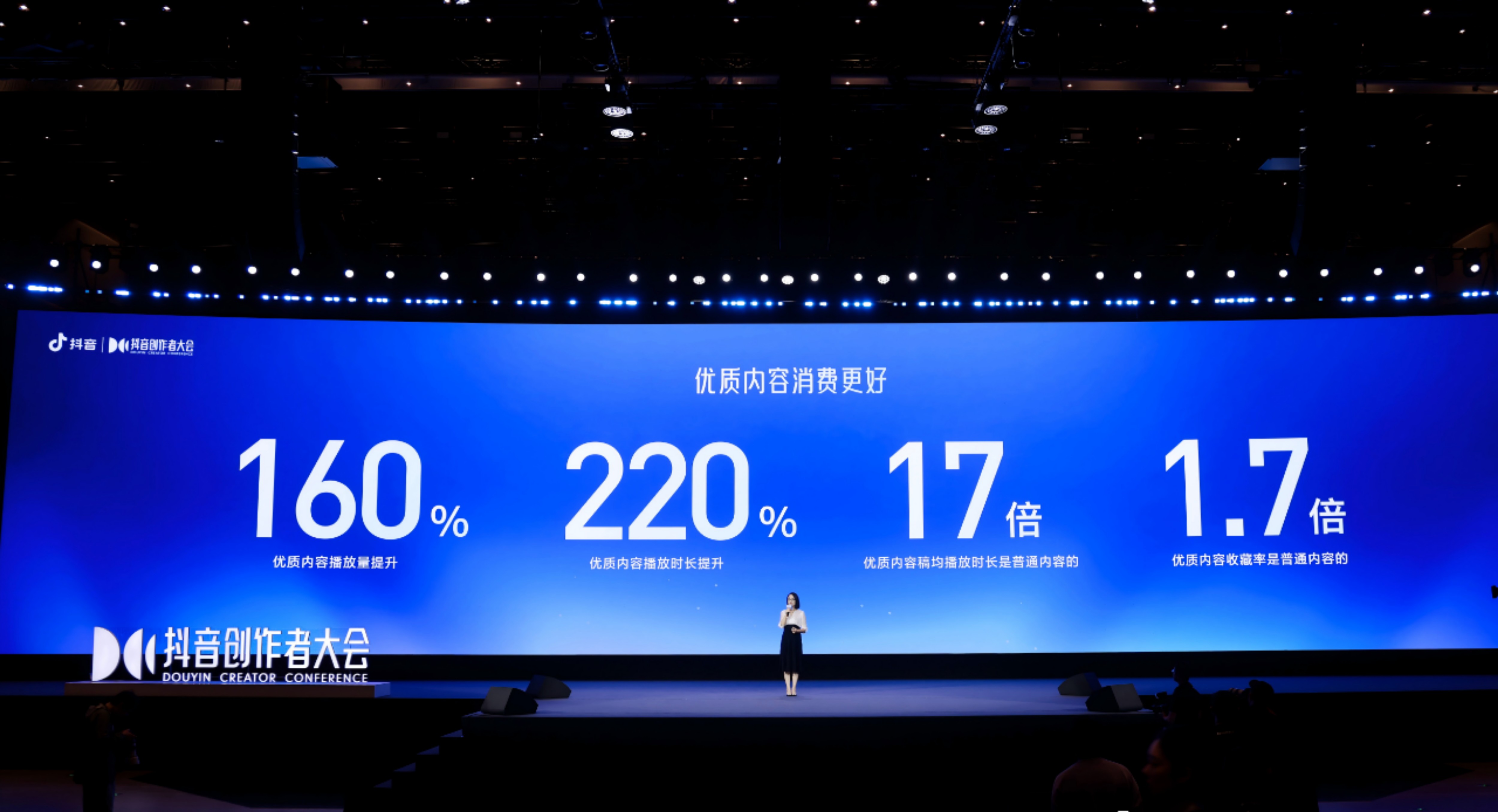 過去一年,抖音優質內容獲得用户廣泛認可,消費端與創作端均呈現良好發展態勢。據抖音副總裁陳都燁介紹,一年來,抖音優質內容播放量同比提升160%,播放時長同比提升220%,其中優質內容稿均播放時長達到普通內容的17倍,收藏率也為普通內容的1.7倍。垂類內容方面,遊戲、二次元、人文社科等17個垂類的優質內容播放時長同比實現翻番;創作風格也更趨多元,從200餘種增加至800餘種,豐富了平台內容供給。