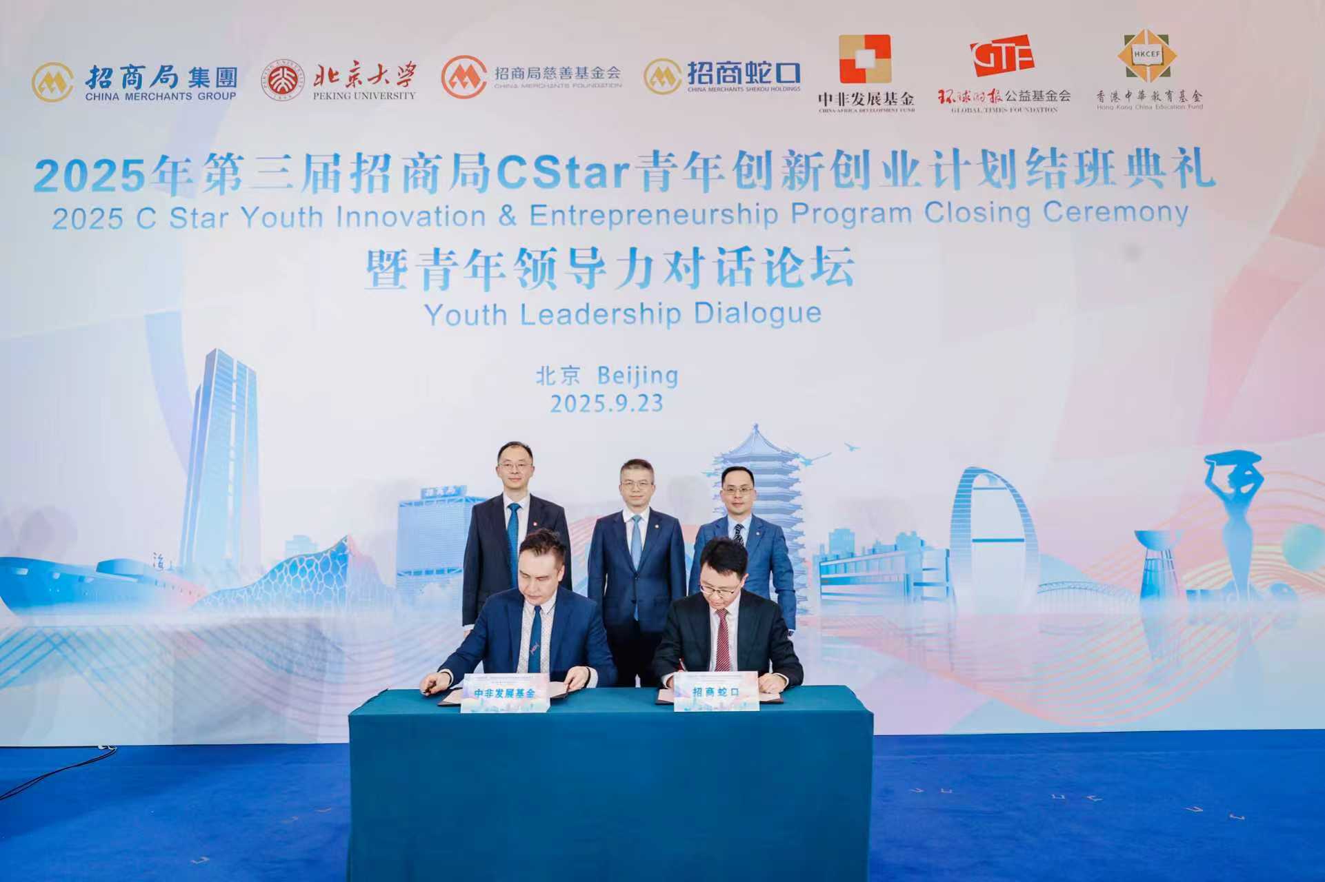 9月23日下午,第三屆招商局C Star青年創新創業計劃(下稱“C Star計劃”)結班典禮暨青年領導力對話論壇在北京大學舉行。招商局集團副總經理蔣鐵峯、北京大學副校長董志勇、索馬里駐華大使和丹、肯尼亞駐華副大使麗奈、中非發展基金董事長王少丹、環球時報公益基金會理事長白龍出席並致辭。外交部非洲司參贊李琦、國務院國資委新聞中心副主任張義豪、招商蛇口財務總監兼董事會秘書餘志良、中國民間組織國際交流促進會秘書處處長王志雲,以及第三屆C Star計劃全體學員及各界代表參加活動。