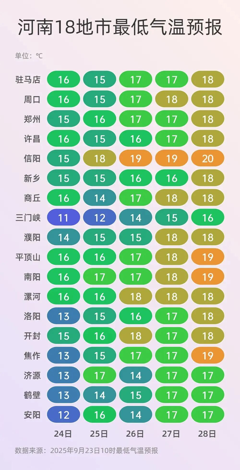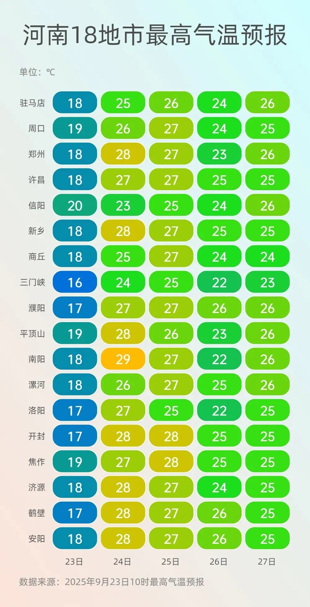 來源:河南省氣象台2025年9月23日12時預報