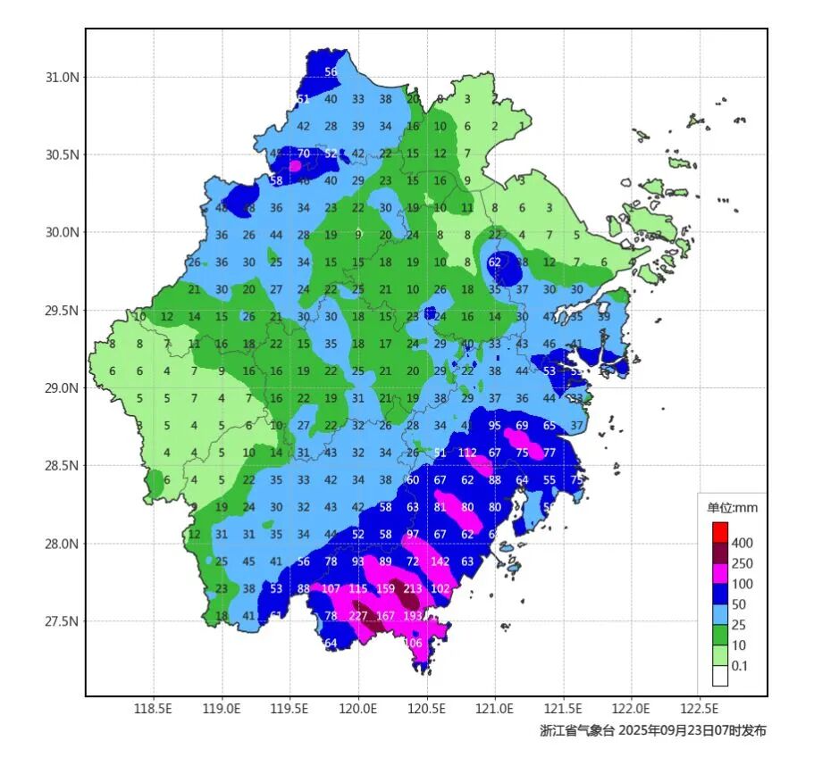 1、今天(23日)温州、台州、寧波南部和麗水東部等地有大雨暴雨,温州和台州南部部分大暴雨。