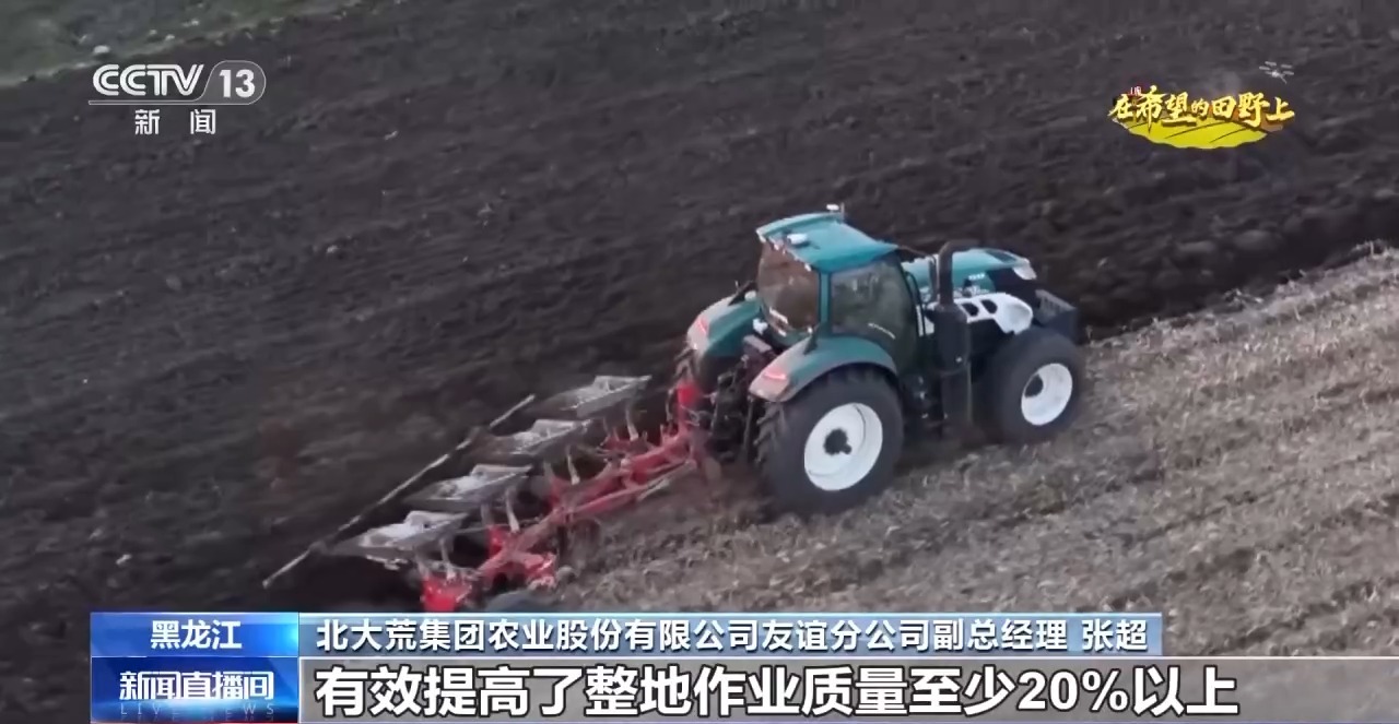 *北大荒集團農業股份有限公司友誼分公司副總經理 張超:*過去是靠農機手的經驗對其進行判斷,時常會發生深淺不一的情況。現在可以即時進行監控,有效提高了整地作業質量至少20%,同時這台車還配備了合墒器,把大土塊打得更加細碎,也為明年的單產提升做了充分的準備。
