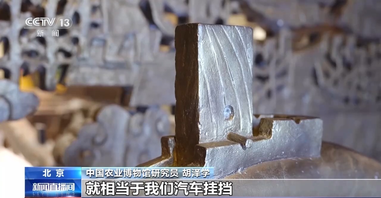 *中國農業博物館研究員 胡澤學:*這個犁評,就相當於汽車掛擋,要犁淺,就把刻度往高提,犁鑱離地面就高了,犁的時候就淺了。如果要犁深,就把犁評的刻度往低調。