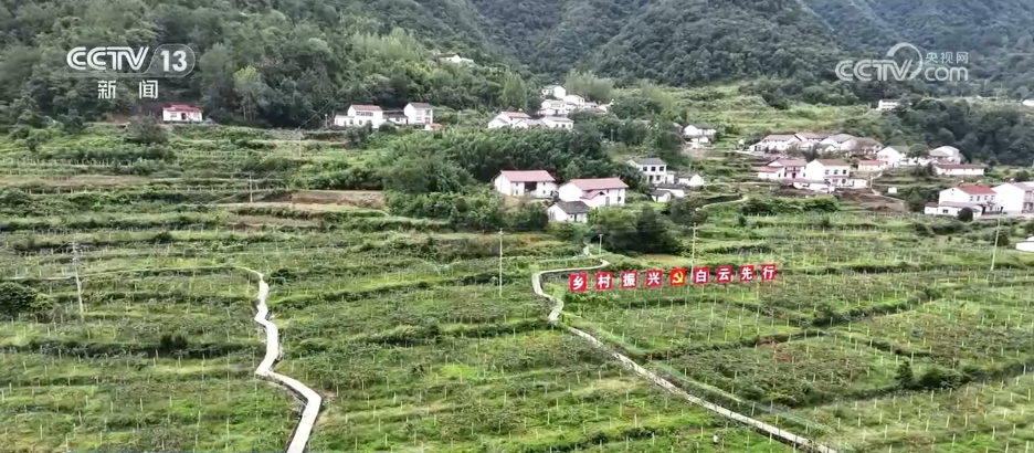 近年來,當地通過產業調整,不斷嘗試新發展模式,最終確定獼猴桃種植產業。當地通過土地流轉、舉辦採摘節、村幹部直播帶貨等方式帶動村民增收。如今再從高空俯瞰,白雲村山巒疊翠、溪水潺潺,一片片獼猴桃園點綴其間,充滿生機與希望。