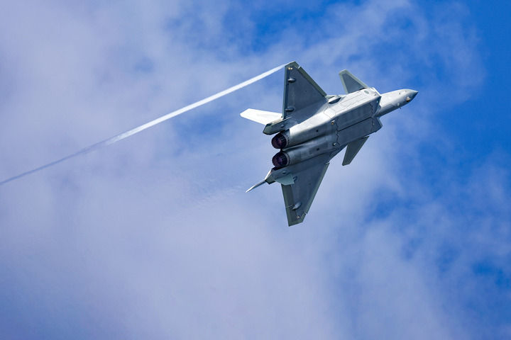 ↑9月19日,殲-20進行飛行表演。新華社發(譚巳成 攝)