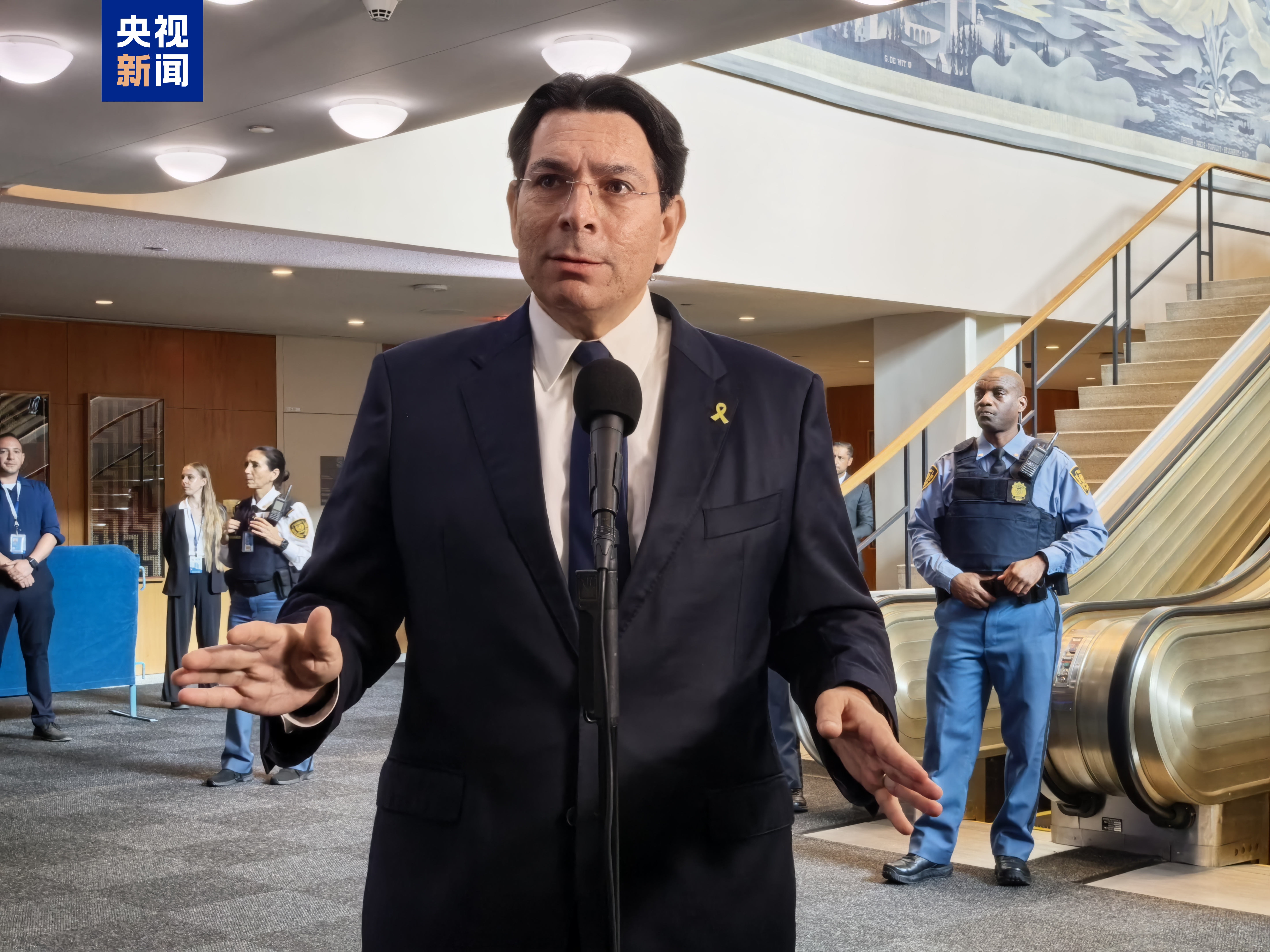 △當地時間22日,以色列常駐聯合國代表達農在聯合國總部接受央視記者採訪