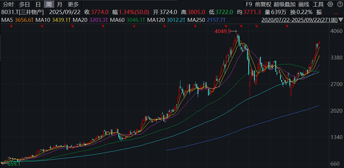 公開資料則顯示,巴菲特2020年首次宣佈持有包括三井物產在內的日本五大商社股份,受巴菲特效應提振,這些商社股價漲幅持續領先東證指數。以三井物產為例,該公司股價在2020年底為809.2日元,截至今年9月22日收盤已升至3774日元,近5年漲幅近4倍。