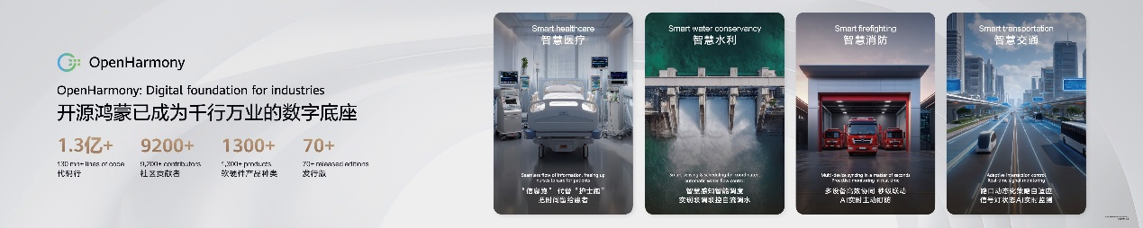 華為,在這場科技競爭中扮演着舉足輕重的角色。在AI時代的浪潮下,以開源鴻蒙(OpenHarmony)為數字底座,華為已經打下了堅實的基礎。歷經多年的研發與積累,OpenHarmony如今已擁有1.3億行代碼,社區貢獻者有9200多位,推出了1300多款軟硬件產品和70多款行業發行版,覆蓋金融、交通、教育、能源、航天、消費電子等領域,開源鴻蒙已成為千行萬業的數字底座。