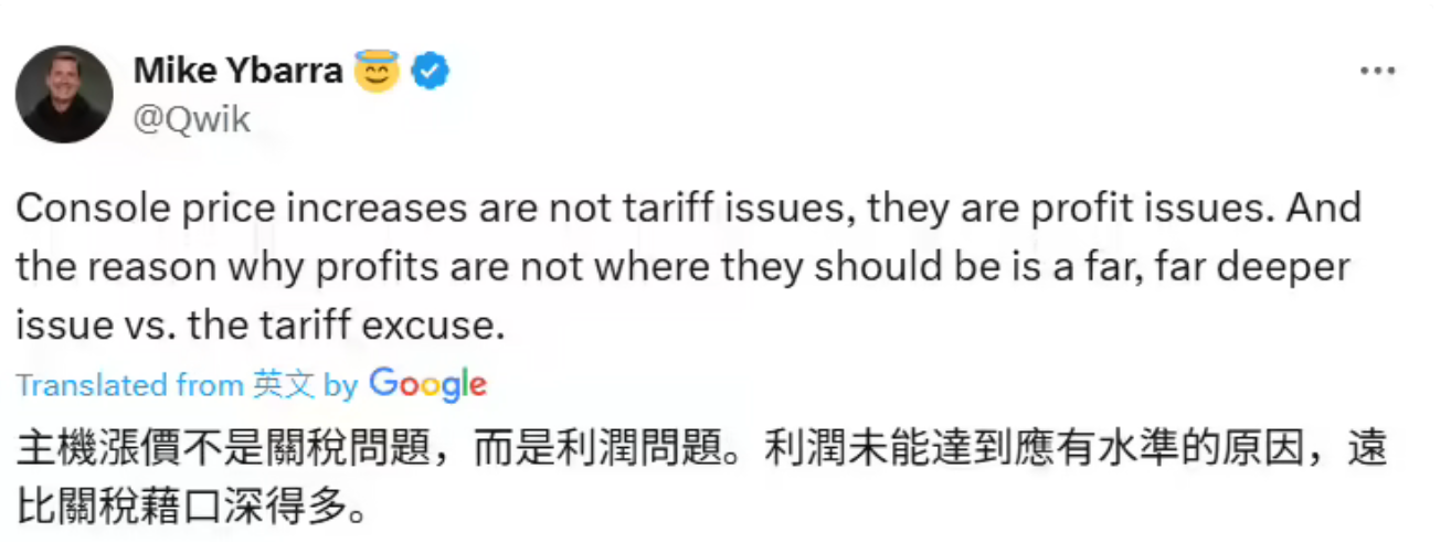 Mike Ybarra透露,今年5月的首次漲價確實涉及關税成本,但此次調整完全源於微軟內部利潤壓力。他批評微軟將經營風險轉嫁給消費者:“若想推動玩家升級至Xbox Series系列,微軟應自行承擔關税成本,而非讓用户為利潤不足買單。”(青山)