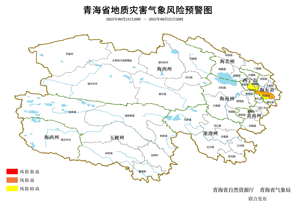 根據過去48小時降水實況和未來24小時降水預報,結合地質災害易發程度,考慮地質災害的滯後性,9月24日20時至9月25日20時,海東市化隆縣巴燕鎮、謝家灘鄉、扎巴鎮、沙連堡鄉、二塘鄉、阿什努鄉、查甫鄉、石大倉鄉、初麻鄉、昂思多鎮、金源鄉、雄先鄉、塔加鄉地質災害氣象風險預警等級為Ⅱ級(橙色預警),氣象因素致地質災害發生風險高。海東市化隆縣其他地區,西寧市湟中區上新莊鎮、西堡鎮、多巴鎮、共和鎮、甘河灘鎮、土門關鄉、漢東鄉、大才鄉、魯沙爾鎮、羣加鄉、田家寨鎮地質災害氣象風險預警等級為Ⅲ級(黃色預警),氣象因素致地質災害發生風險較高。請結合預警信息,密切關注降水情況,做好預警區內受威脅羣眾避險轉移等地質災害防範工作。嚴防重點地質災害危險區內已避險轉移羣眾擅自迴流。
