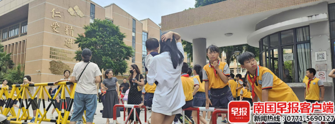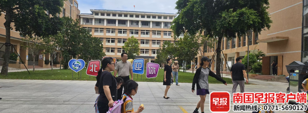 9月24日中午,北海市一學校門前,家長陸續將孩子接回。