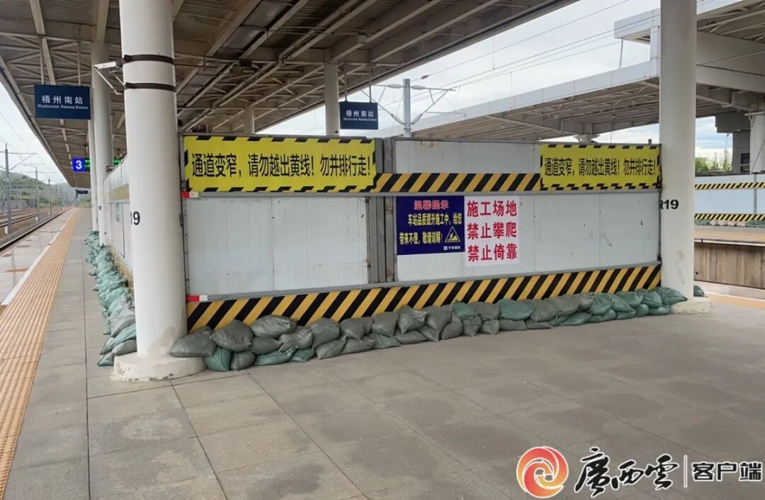 9月24日,記者從南寧鐵路局梧州車務段獲悉,受今年第18號颱風“樺加沙”帶來強降雨影響,為確保旅客列車安全,9月24日途經梧州南、藤縣站所有列車停運。目前,梧州南站已對站台的圍擋進行了加固。