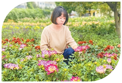 包頭市園林科研所的花圃中,吳曉靜在查看小麗花生長狀況。