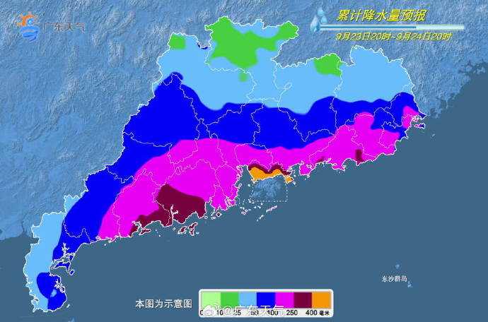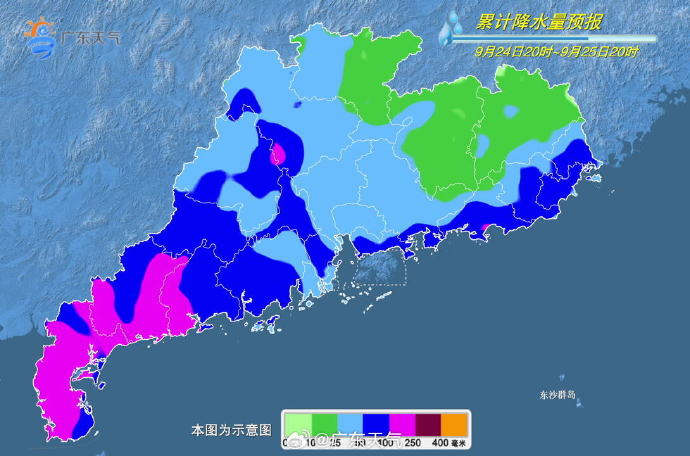 降水預報:24日08時至25日08時,廣東大部、廣西東部和南部、福建東部和南部、海南島北部和西部、台灣島東部、江蘇中部、安徽中南部、湖北東部、江西北部、東部和西南部、浙江東部等地部分地區有大到暴雨,其中,廣東中南部、福建東南部、海南島西部、台灣島東南部、江蘇中部、安徽中部等地部分地區有大暴雨,廣東東南部沿海和西部等地局地特大暴雨(250~270毫米)。
