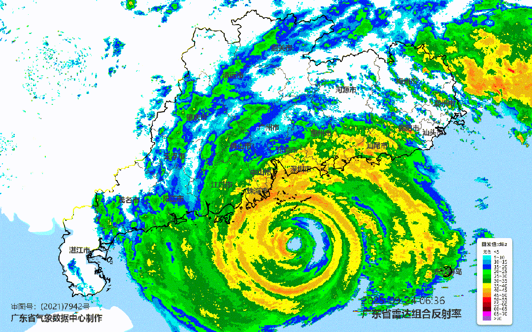 24日,粵東、珠三角中南部、粵西市縣有暴雨到大暴雨局部特大暴雨,其餘市縣有大雨局部暴雨。雷雨時伴隨8~10級短時大風。