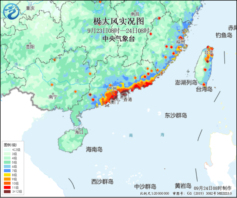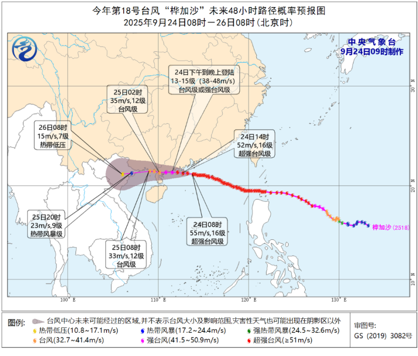 中央氣象台:颱風“樺加沙”24日下午到晚上將在廣東台山到湛江一帶沿海登陸