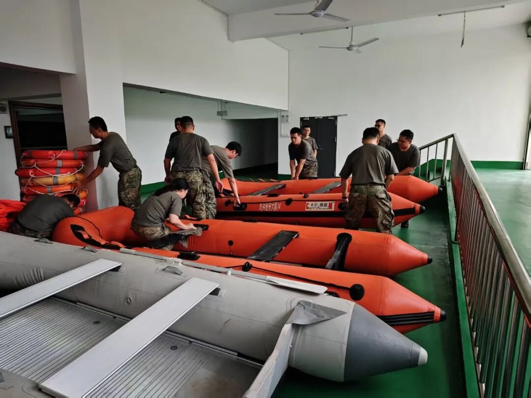 與此同時,他們緊急備便衝鋒舟、橡皮艇、救生衣、應急發電、應急照明及通信等裝備器材,並逐一進行檢查調試,保證裝備完好率,確保一聲令下隨時出動。