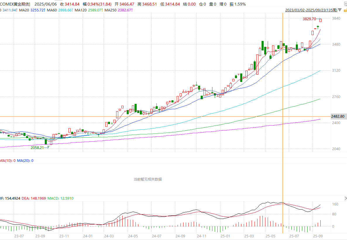 【環球網消費綜合報道】受國際金價持續攀升提振,黃金板塊近期成為市場焦點。9月23日,COMEX黃金期貨收盤價為3829.70美元/盎司,再創歷史新高。受此影響,A股黃金上市公司股價集體走強,中金黃金、曉程科技等領漲。與此同時,品牌首飾金價水漲船高,逼近1100元/克關口,黃金行業上市公司更獲機構密集調研,成本控制、產量目標及全球化佈局成為關注核心。