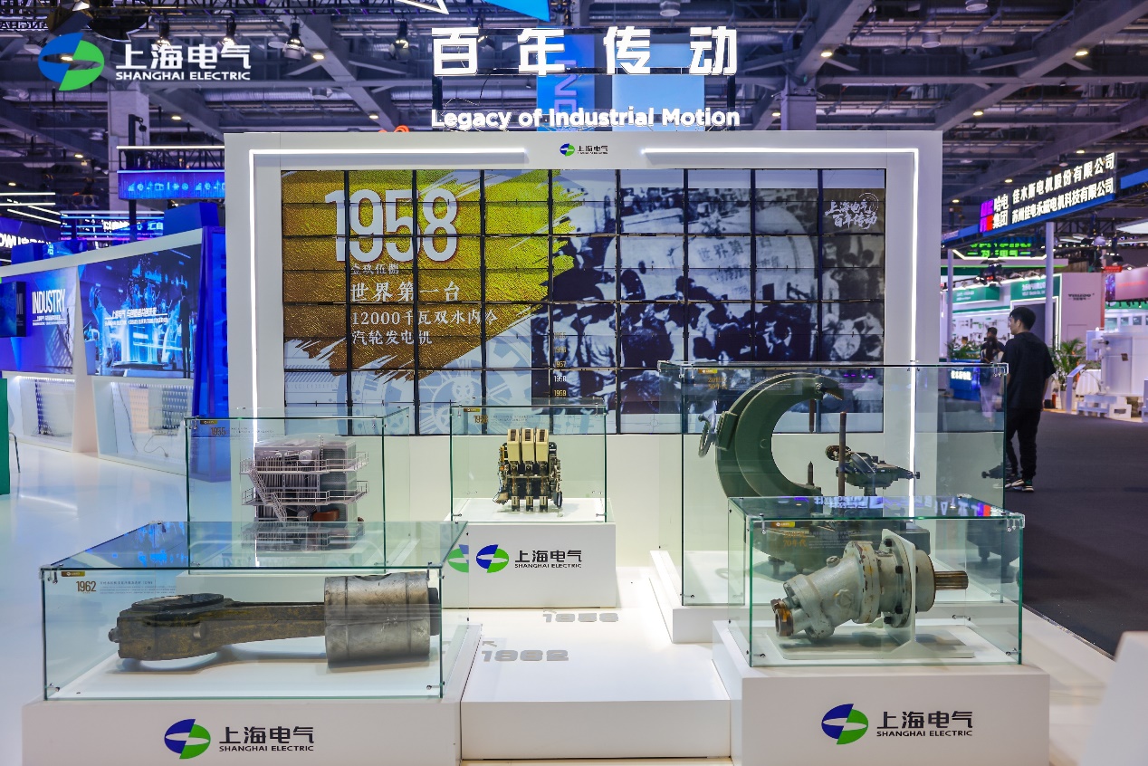 工業新質源自歷史積藴,上海電氣是我國近代工業的搖籃、上海工業發展歷史變遷的發展樣本,工業傳動的血脈可追溯至120餘年前。本屆工博會上,上海電氣特設“百年傳動”展區,集中展示了一批能代表新中國工業里程碑、“上海製造”金字招牌的老物件,包括1955年製造的40t/h中壓鏈條爐排鍋爐的復刻模型、新中國第一台6000千瓦汽輪機的原始測量儀器,共同訴説着我國第一套自主火力發電設備的誕生的故事。萬噸水壓機主泵活塞及連桿,不僅顯示了中國在重型機械製造技術上的突破,展現了中國產業工人自力更生髮奮圖強的精神。此外,中國首次自主研發設計生產的低壓電器元件、全國勞模李斌應用及研製攻克難關設備及產品等,這些實物是中國電力裝備走向自主化的起點,承載了上海電氣百年來一路走來的精神譜系。通過展示這些承載了中國現代工業真實記憶的老物件,向觀眾“解鎖”上海電氣的歷史傳承魅力與工業進化密碼。