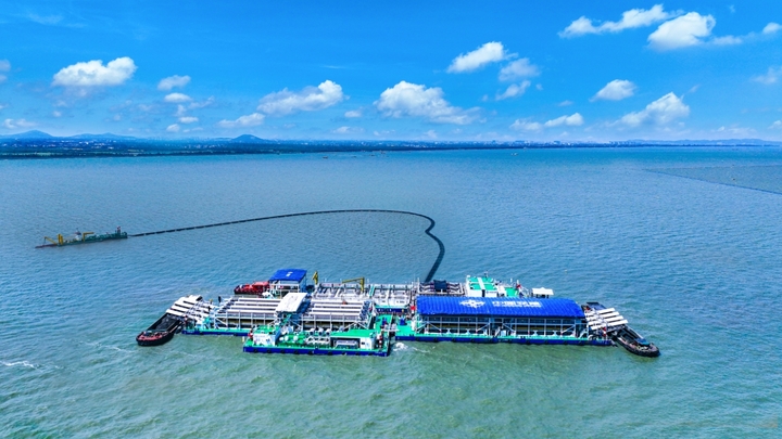 站在“太湖之光”作業平台上遠眺,清澈的湖水隨風盪漾,不時有海鷗掠過湖面。這座由中國智慧打造的生態清淤綠色智能一體化水上平台,承載着“美麗中國”的使命,也凝結着中國疏浚人科技自立自強的決心。
