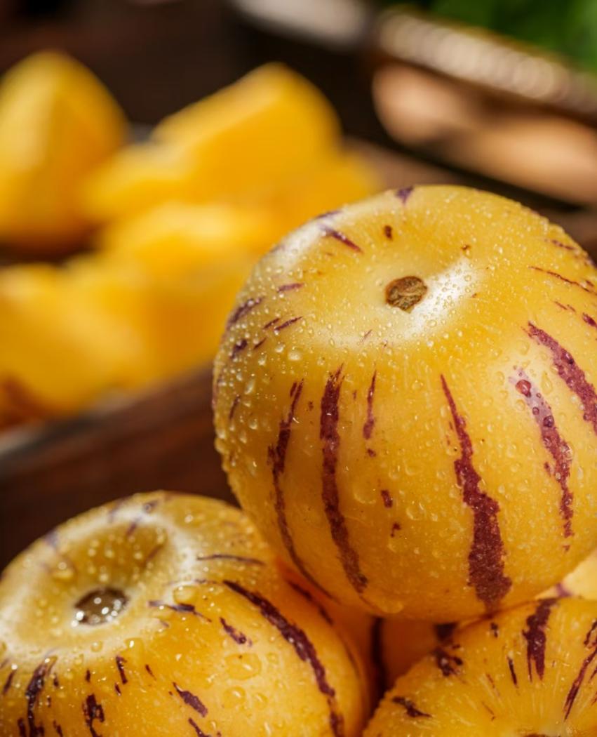 在中國傳統文化中,人蔘果常以《西遊記》中“三千年一開花,三千年一結果”的仙界聖果形象出現,神秘而遙遠。現實中,人蔘果是一種可供日常食用的水果,學名為香瓜茄(Solanum muricatum,又稱Pepino Melon),原產於南美洲安第斯山脈地區,屬茄科多年生草本植物,亦稱長壽果、香豔梨。自20世紀80年代引入中國以來,雲南石林依託獨特的喀斯特地貌和得天獨厚的自然條件,培育出皮薄肉厚、果肉淡黃、汁水豐盈、甜潤清香的高品質人蔘果,並逐步發展成為我國人蔘果的核心產區。