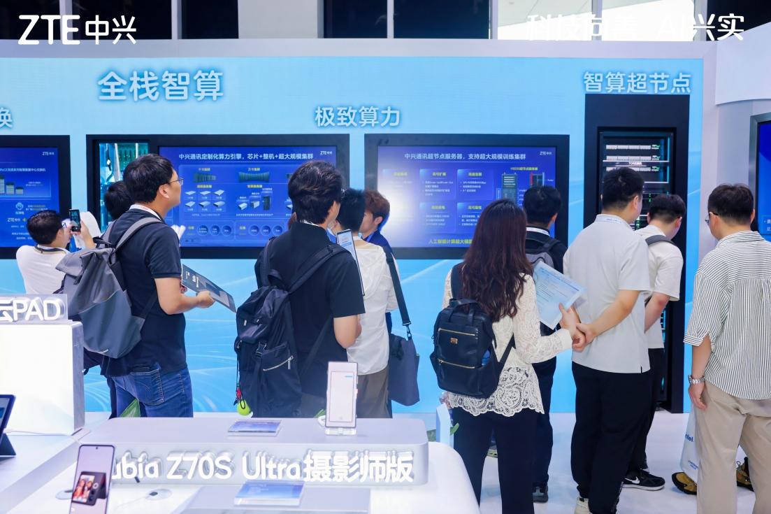 中興通訊在“算力、網絡、終端”三大領域持續突破底層核心技術,形成全棧優勢。大會重點展出了單機支持64張GPU的超節點服務器,支持Scale-Up與Scale-Out雙重擴展模式,具備業界領先的集成度與擴展能力,支撐打造軟硬協同、以網強算、開放解耦、高效高穩的萬卡、十萬卡超大規模智算集羣。目前,中興智算服務器已廣泛進入國內多家互聯網頭部企業核心業務場景,並在國際市場實現規模商用,逐步構建起全球化智算生態。