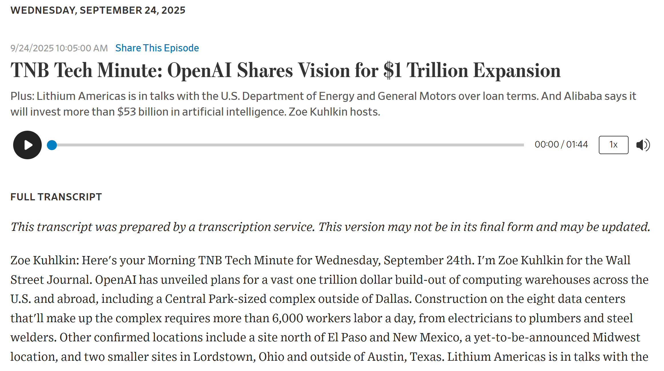 【環球網科技綜合報道】9月25日消息,據華爾街日報報道,人工智能領域領軍企業OpenAI正式公佈全球計算基礎設施大規模擴張計劃,總投資額預計高達1萬億美元。其中,位於美國得克薩斯州阿比林市、佔地面積堪比紐約中央公園的計算中心已啓動建設,標誌着全球人工智能產業正從模型創新競爭階段邁入基礎設施建設“軍備競賽”新階段。