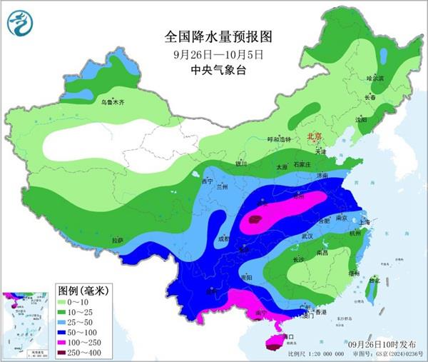 展望後期,未來10天,四川東北部、陝西南部一帶將是降雨最強的區域之一,其中10月1日至3日,陝西南部、四川盆地東部、江漢、黃淮南部、江淮等地還有一輪降雨過程,有中到大雨,局地暴雨。