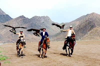 新疆阿合奇縣蘇木塔什鄉馴鷹文化旅遊景區的柯爾克孜族馴鷹表演。本報記者 劉宇航攝